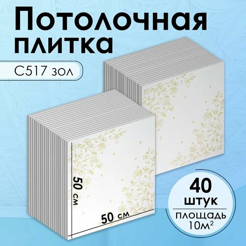 Плитка потолочная, Экструдированная, С517 «Золото», 50×50 см, 10кв.м, 40 шт.: сравнение цен, характеристики, фото, актуальное наличие и цены.