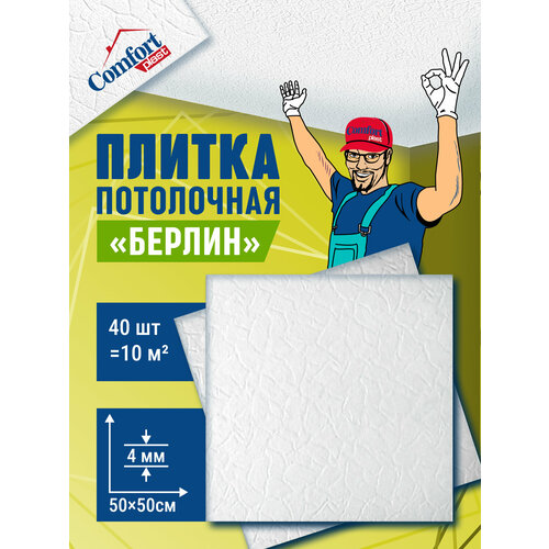 Потолочная плитка Comfort Plast - это легкий и прочный материал, который идеально подходит для отделки потолков в любых помещениях. Плитка изготовлена из пенопласта толщиной 4мм, имеет размеры 50 х 50 см и доступна в различных дизайнах и цветах. Она легко крепится на потолок с помощью клея, не требует особого ухода и может быть легко заменена при необходимости.