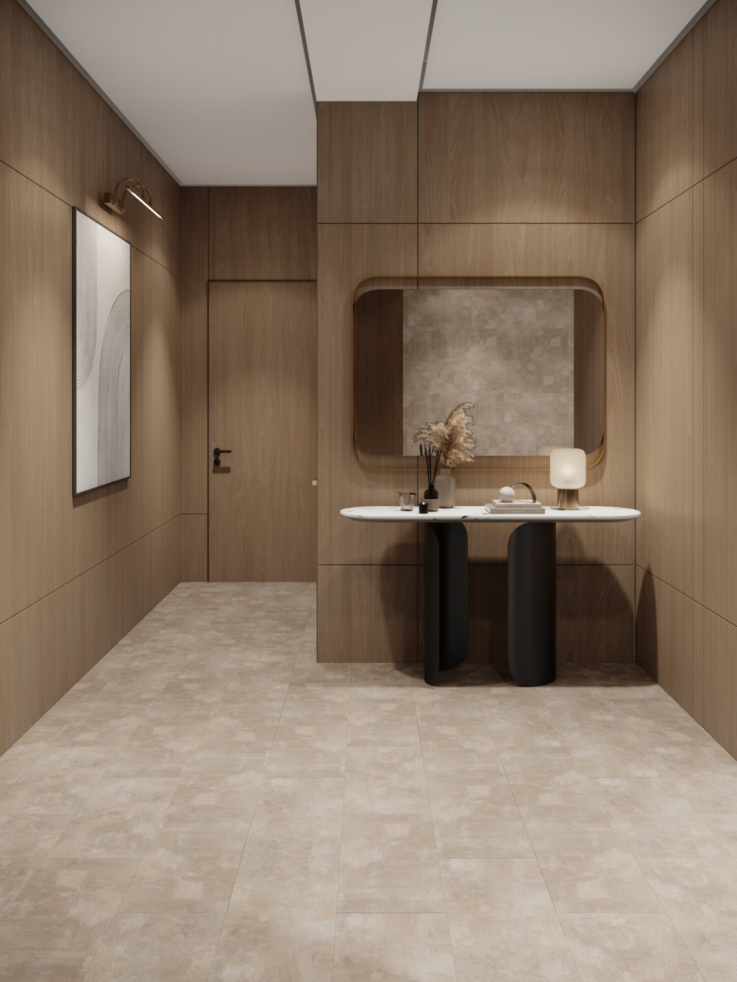 Плитка изготовлена из прочного и надежного материала - SPC, который обеспечивает долговечность и ударопрочность. Благодаря этому, плитка будет служить вам десятки лет, сохраняя свой первоначальный вид.