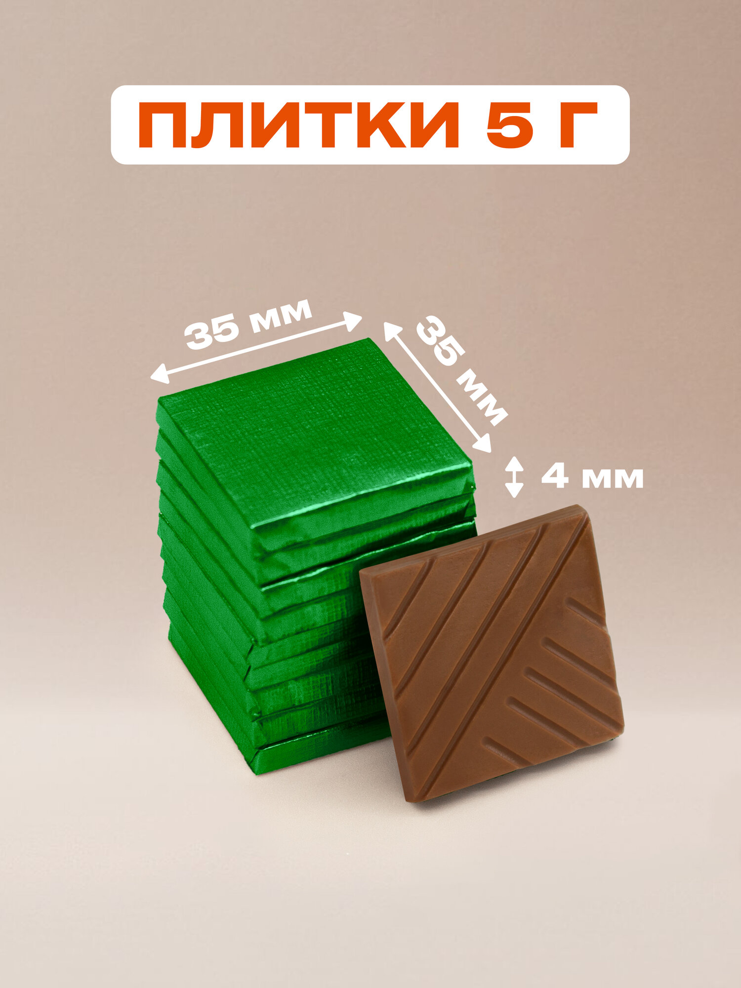 Плитки 5 г из молочного шоколада (33,6%) в зеленой фольге, 500 шт: сравнение цен, характеристики, фото, актуальное наличие и цены.