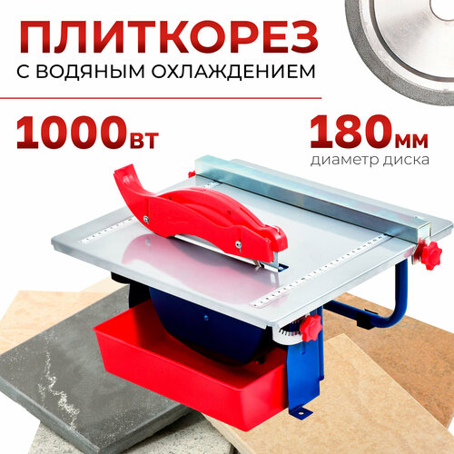 Для охлаждения диска предусмотрено наличие специальной емкости для воды. Водяное охлаждение не дает перегреваться пильному диску и плитке, что предупреждает появление на ней трещин.