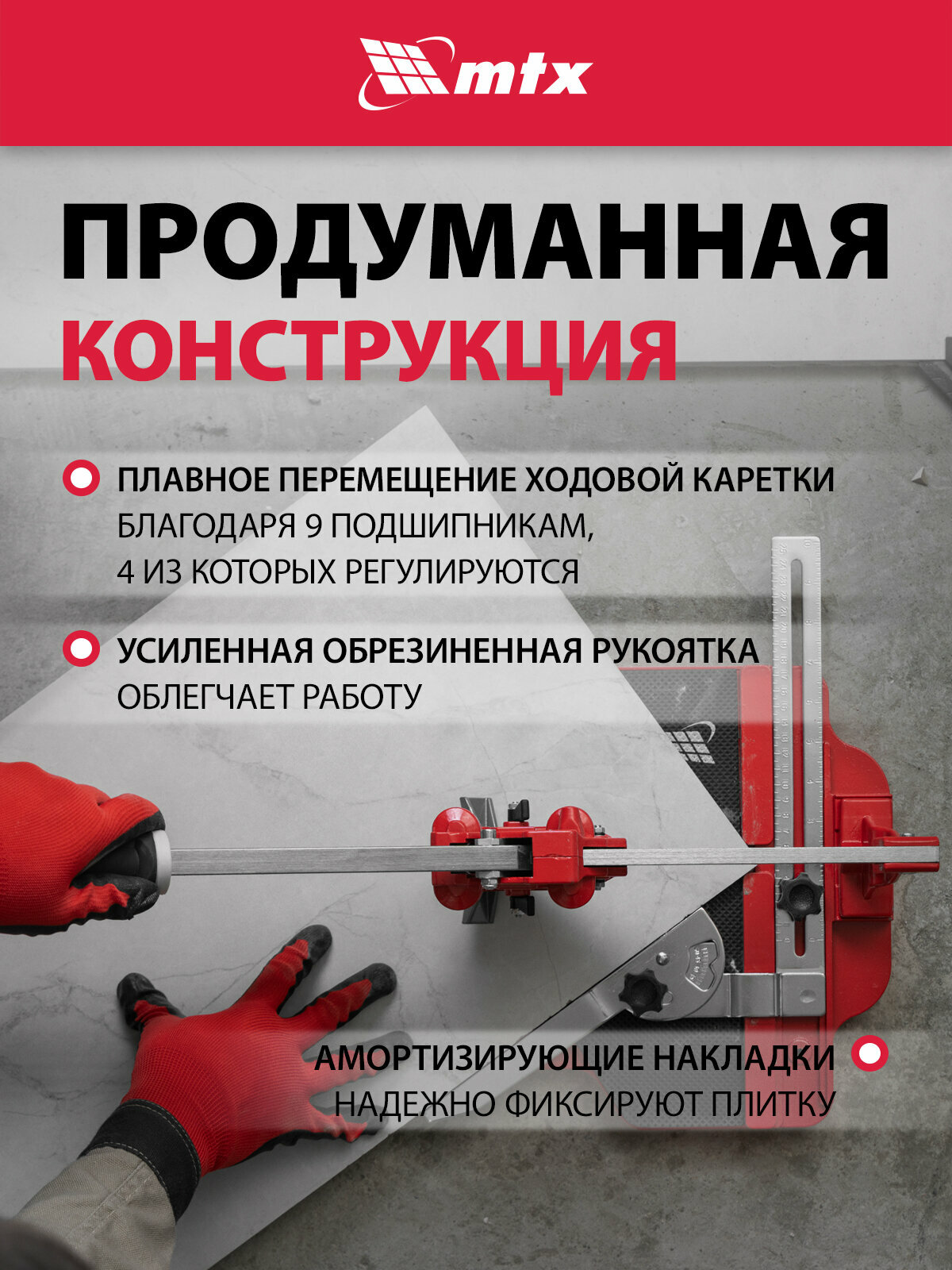 Плиткорез ручной монорельсовый MTX 600х14 мм, ходовая каретка, 9/4 регулировка подшипников, литая станина 87591: сравнение цен, характеристики, фото, актуальное наличие и цены.