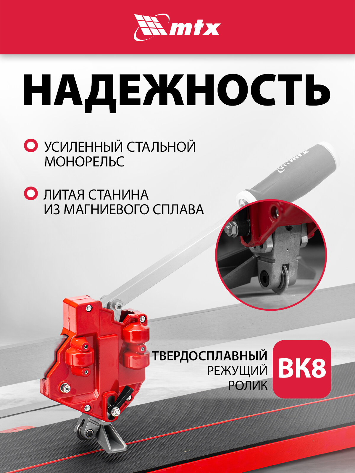 Купить Плиткорез ручной монорельсовый MTX 600х14 мм, ходовая каретка, 9/4 регулировка подшипников, литая станина 87591 с доставкой по всей России.