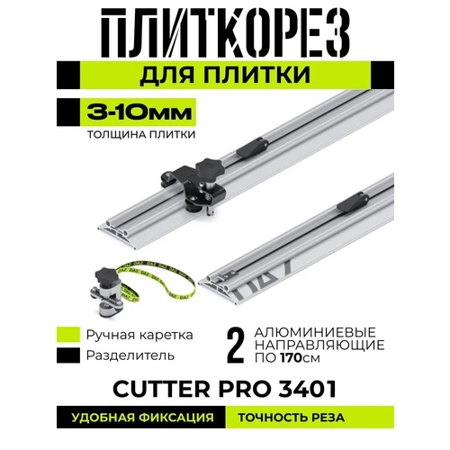 В комплект плиткореза входят две алюминиевые направляющие длиной 170 см, ручная каретка и разделитель для равномерного и точного вскрытия реза. Плиткорез ручной для широкоформатной плитки - надежный и удобный инструмент, который позволит вам профессионально резать керамогранитную плитку любого формата.