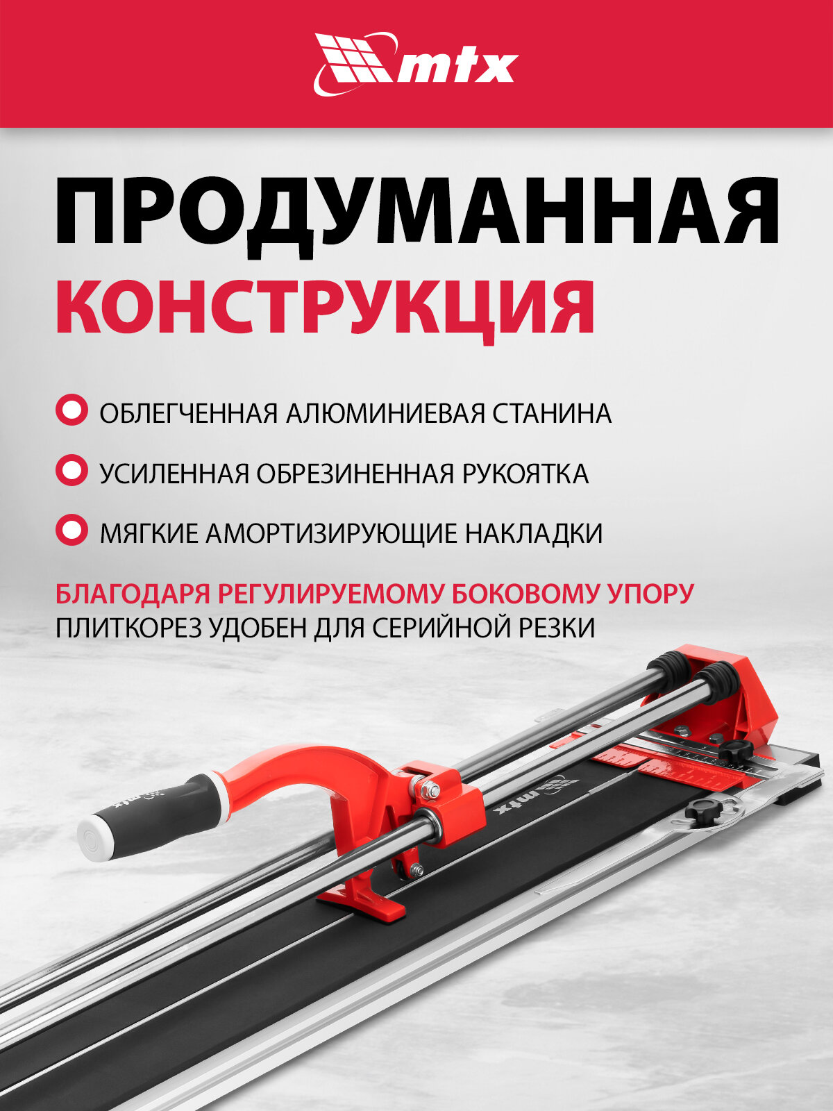 Плиткорез ручной MTX 800 х 14 мм, каретка на подшипниках, усил. рук-ка, облегченная алюм. станина 87583: сравнение цен, характеристики, фото, актуальное наличие и цены.