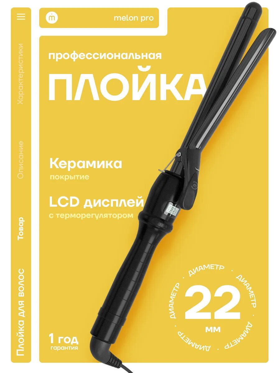 Плойка для завивки волос профессиональная 22 мм Melon VERGO one: сравнение цен, характеристики, фото, актуальное наличие и цены.