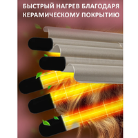 Пятиволновая плойка щипцы с керамическим покрытием позволяет создавать укладку с локонами разной степени упругости. Такие красивые локоны получаются из-за помещения пряди на одну из поверхностей плойки и придавливания волос двумя другими. Фиксация происходит под действием высокой температуры Вы можете с её помощью создать роскошные волны или пышную шапку кудряшек. Потратьте всего несколько минут на укладку, закрепите её капелькой лака или геля, и у вас будет причёска на зависть любой голливудской звезде. Плойка для завивки волос Geemy GM-2933 имеет прочное и долговечное керамическое покрытие, которое медленно, но равномерно разогревается, имеет гладкую поверхность, благодаря чему легко скользит по волосам, не перегревает их, нанося меньший вред по сравнению с металлическими утюжками и плойками. Удобная конструкция данной плойки позволит Вам закручивать очень большие пряди в локоны. Шнур устройства поворачивается на 360 градусов. Подходит для абсолютно разных типов и волос.