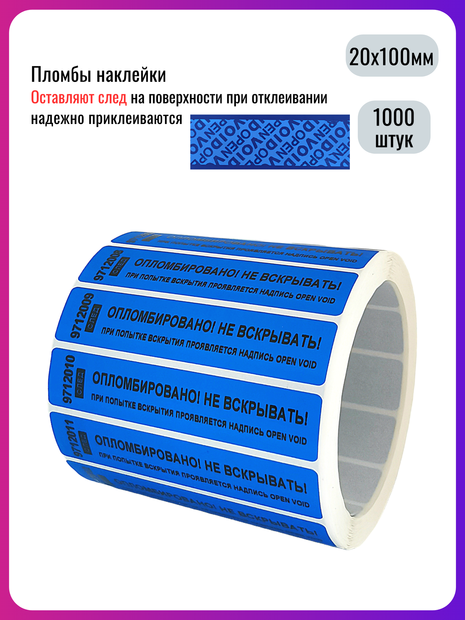 Пломба наклейка номерная 20х100мм, оставляет след, Синяя, 1000 штук: сравнение цен, характеристики, фото, актуальное наличие и цены.