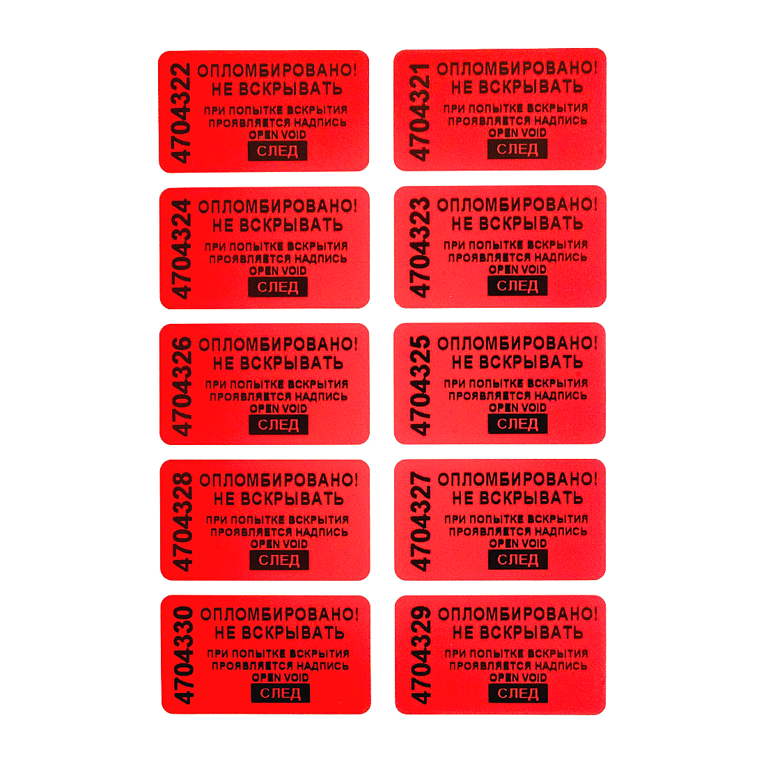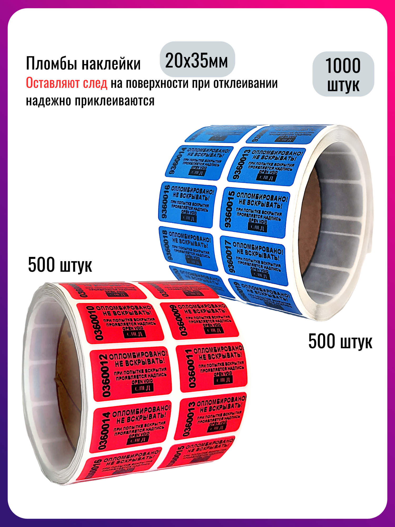 Пломба наклейка номерная 20х35мм, оставляет след, Красная 500 штук + Синяя 500 штук: сравнение цен, характеристики, фото, актуальное наличие и цены.