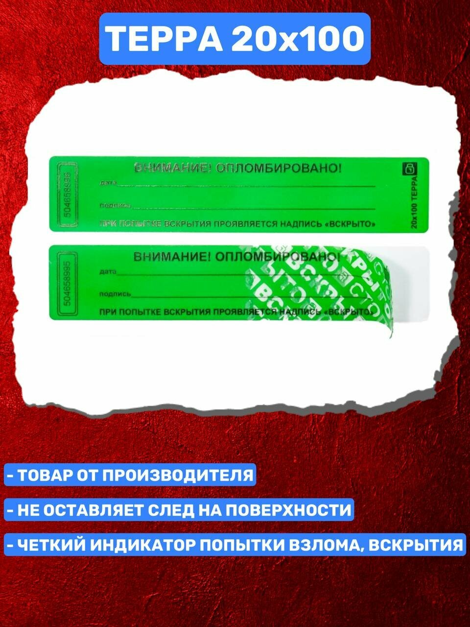 Купить Пломба-Наклейка Терра 20х100 мм Зеленый (500 шт.) с доставкой по всей России. Пломба-Наклейка Терра 20х100 мм Зеленый (500 шт.): сравнение цен, характеристики, фото, актуальное наличие и цены.