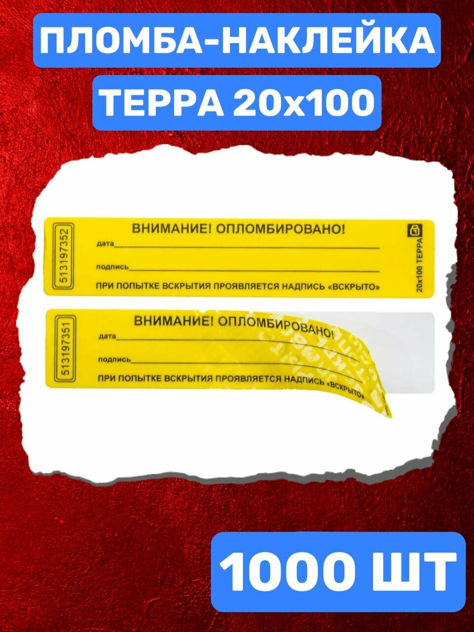 Купить Пломба-Наклейка Терра 20х100 мм Желтый (1000 шт.) с доставкой по всей России. Пломба-Наклейка Терра 20х100 мм Желтый (1000 шт.): сравнение цен, характеристики, фото, актуальное наличие и цены.