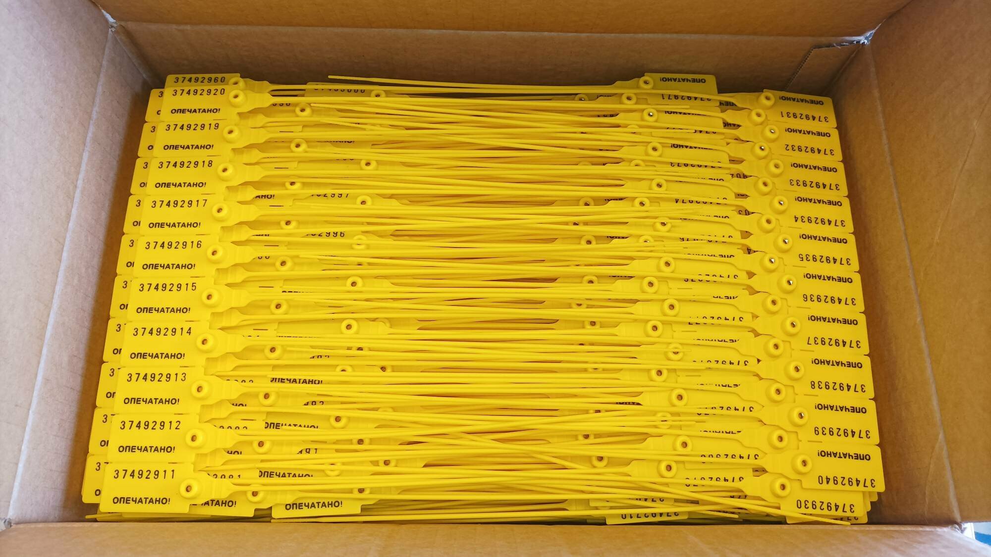 Пломбы пластиковые номерные универсал, самофиксирующиеся, длина рабочей части 220 мм, цвет: желтый, 1000 шт
