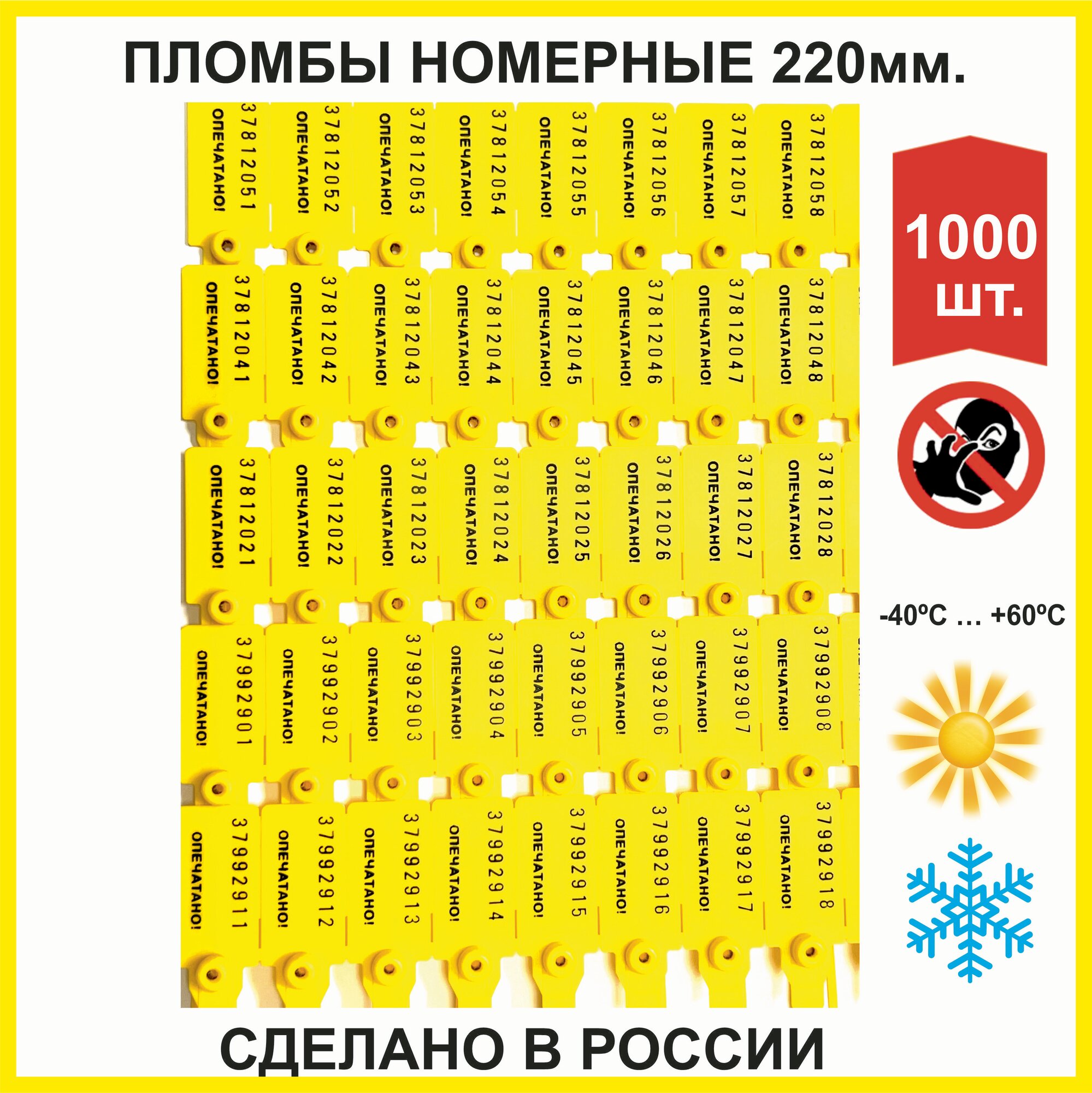 Пломбы пластиковые номерные универсал, самофиксирующиеся, длина рабочей части 220 мм, цвет: желтый, 1000 шт: сравнение цен, характеристики, фото, актуальное наличие и цены.