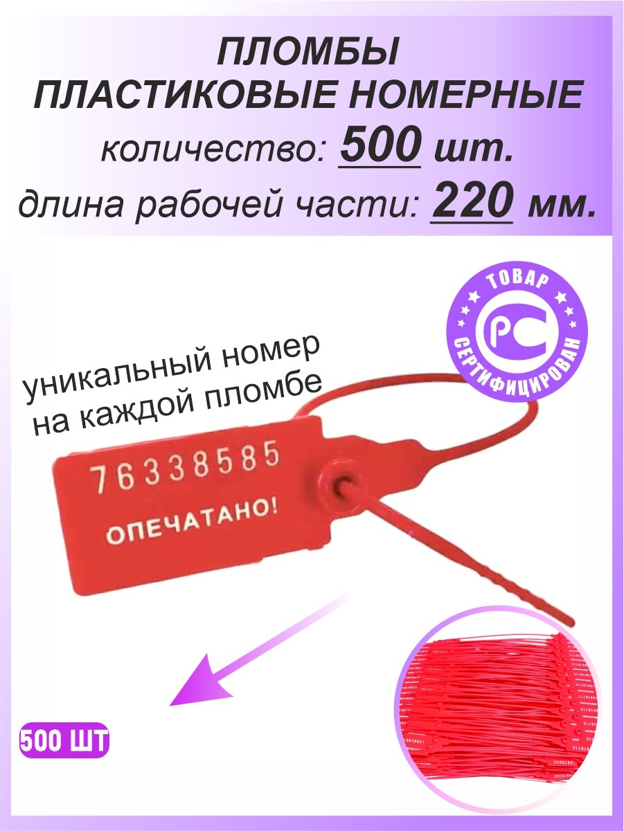 Пломбы пластиковые номерные универсал, самофиксирующиеся, длина рабочей части 220 мм, красные, 500 шт: сравнение цен, характеристики, фото, актуальное наличие и цены.