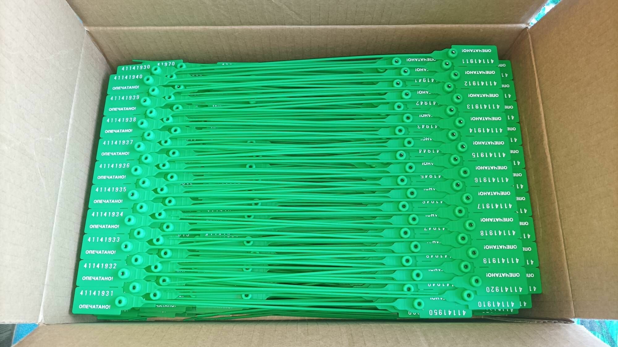 Пломбы пластиковые номерные универсал, самофиксирующиеся, длина рабочей части 220 мм, цвет: зеленый, 500 шт