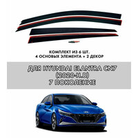 Купить Плоские тюнинг дефлекторы Hyundai Elantra 7 (CN7) (2020-н. в) Ветровики для Хендай Элантра 7 поколение. Комплект 6 шт. с доставкой по всей России.