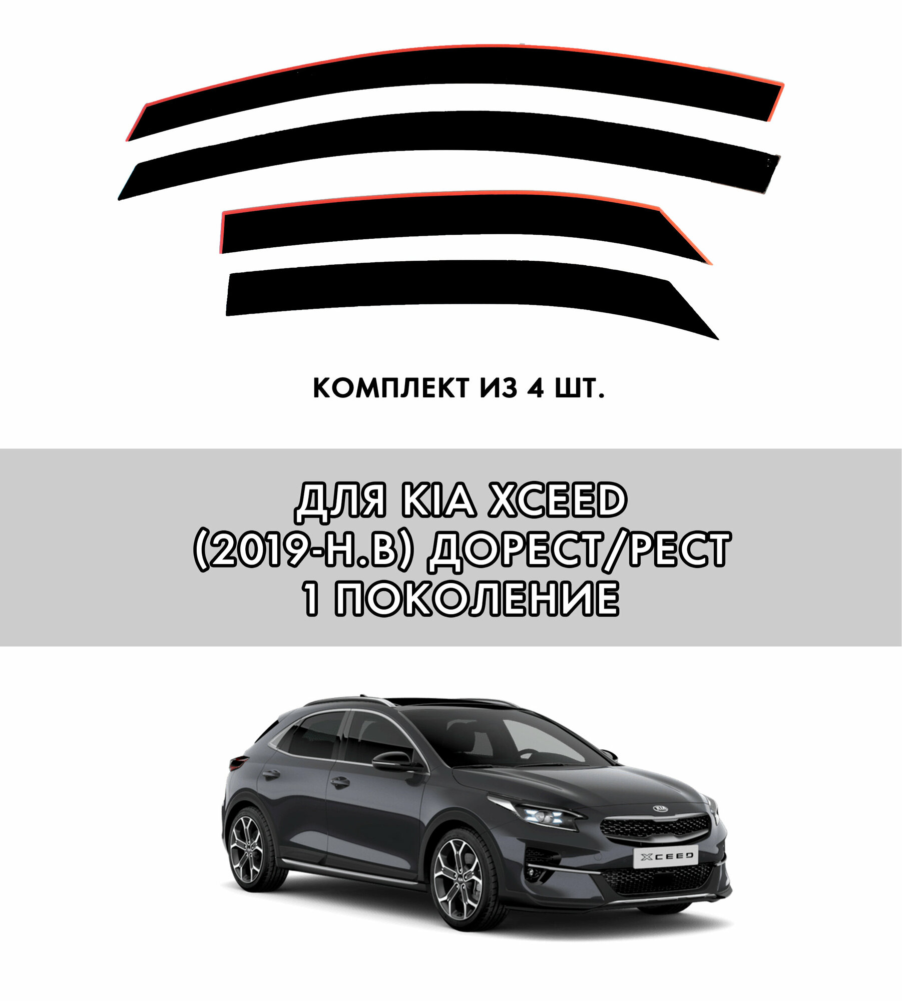 Плоские тюнинг дефлекторы для Kia XСeed 1 (2019-2023) / Ветровики 2d дефлекторы для Киа Х-сид 1 поколение. Комплект 4 шт.: сравнение цен, характеристики, фото, актуальное наличие и цены.