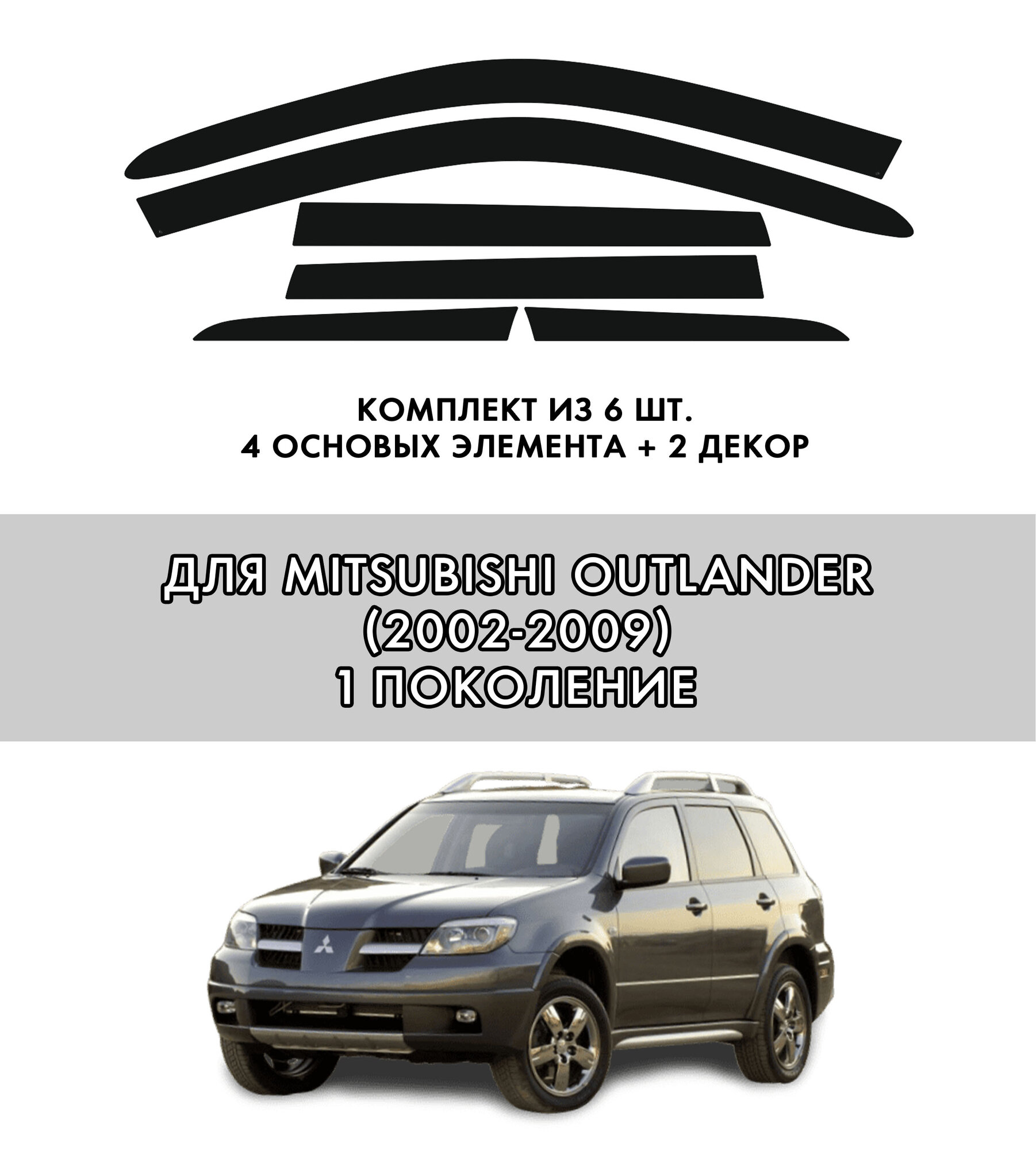 Плоские тюнинг дефлекторы Mitsubishi Outlander 1 (2002-2009) / Ветровики 2d Мицубиси Аутлендер 1. Комплект 6 шт.: сравнение цен, характеристики, фото, актуальное наличие и цены.