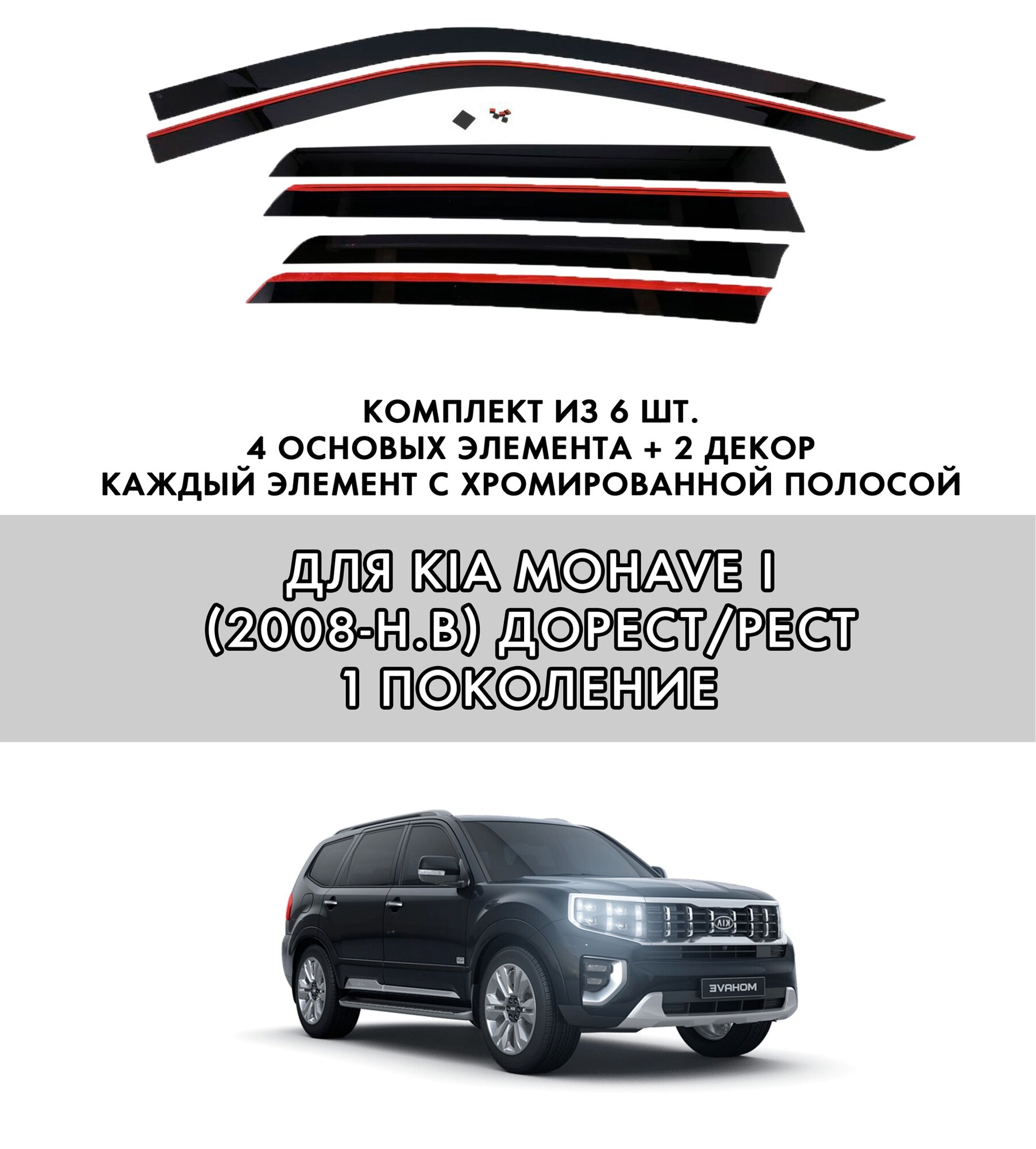 Купить Плоские тюнинг дефлекторы с хромом для Kia Mohave 1 (2008-2020) / Ветровики 2d дефлекторы Киа Мохав 1 поколение. Комплект 6 шт. с доставкой по всей России. Плоские тюнинг дефлекторы с хромом для Kia Mohave 1 (2008-2020) / Ветровики 2d дефлекторы Киа Мохав 1 поколение. Комплект 6 шт.: сравнение цен, характеристики, фото, актуальное наличие и цены.