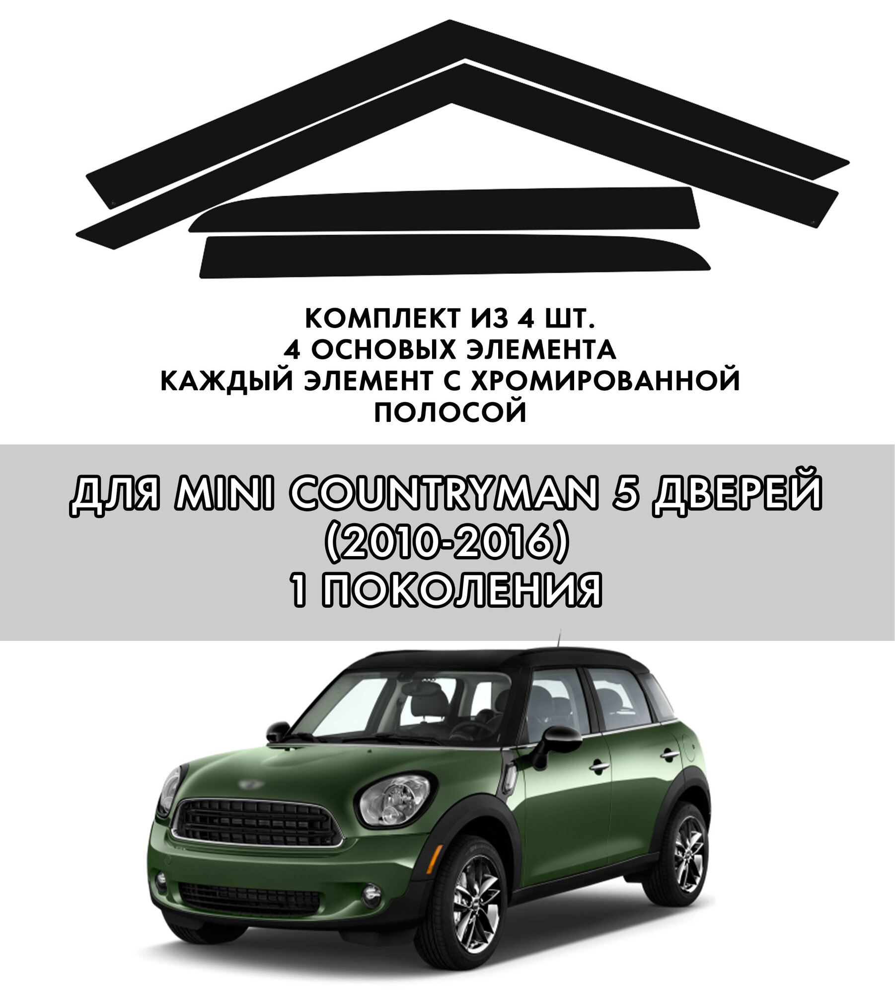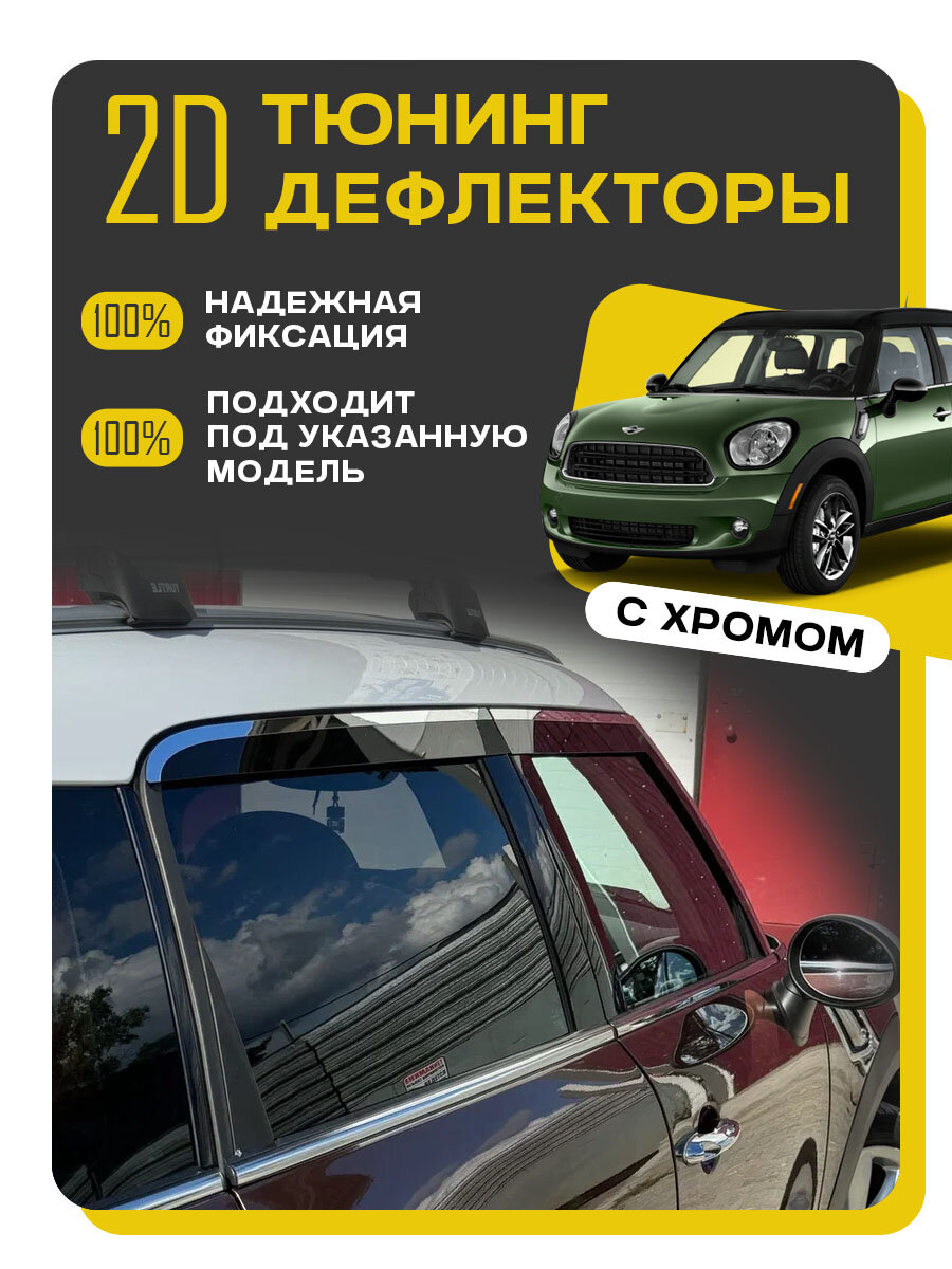 Плоские тюнинг дефлекторы с хромом для Mini Cooper Countryman пятидверный (2010-2016) 1 поколение, 2d дефлекторы / Ветровики на Миникупер Кантримен. Комплект 4 шт.: сравнение цен, характеристики, фото, актуальное наличие и цены.
