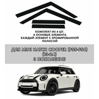 Купить Плоские тюнинг дефлекторы с хромом для Mini Hatch Cooper F55 пятидверный (2013-2024) 3 поколение, 2d дефлекторы / Ветровики на Миникупер хэтчбек. Комплект 4 шт. с доставкой по всей России.