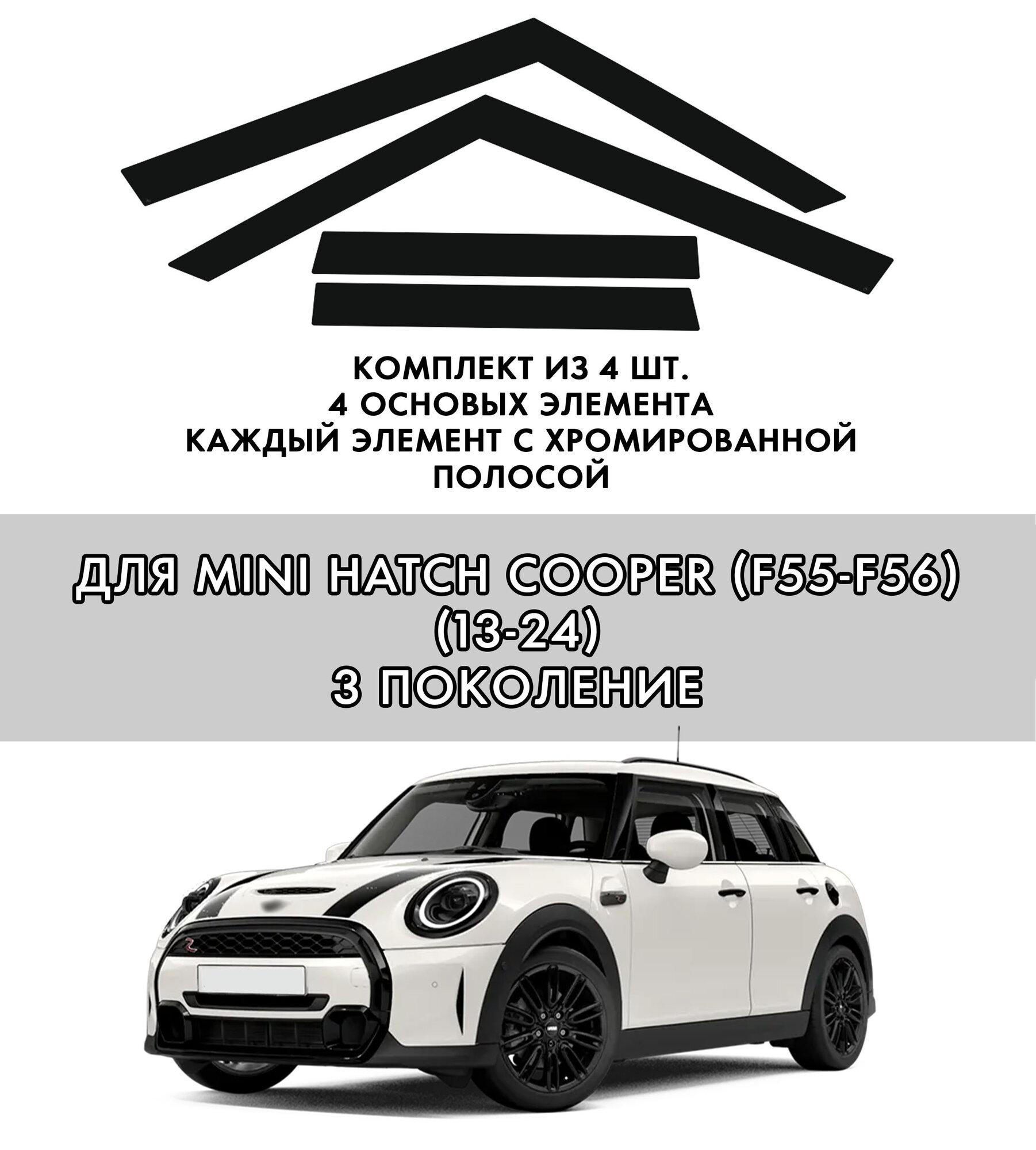 Плоские тюнинг дефлекторы с хромом для Mini Hatch Cooper F55 пятидверный (2013-2024) 3 поколение, 2d дефлекторы / Ветровики на Миникупер хэтчбек. Комплект 4 шт.: сравнение цен, характеристики, фото, актуальное наличие и цены.