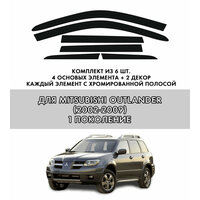 Плоские тюнинг дефлекторы с хромом Mitsubishi Outlander 1 (2002-2009) Ветровики 2d Мицубиси Аутлендер 1. Комплект 6 шт.: сравнение цен, характеристики, фото, актуальное наличие и цены.