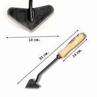 Благадаря своей форме плскорез-мини позволяет быстро и качественно удалить мелкие сорняки, рыхлить почвы под посадку и срезать траву.