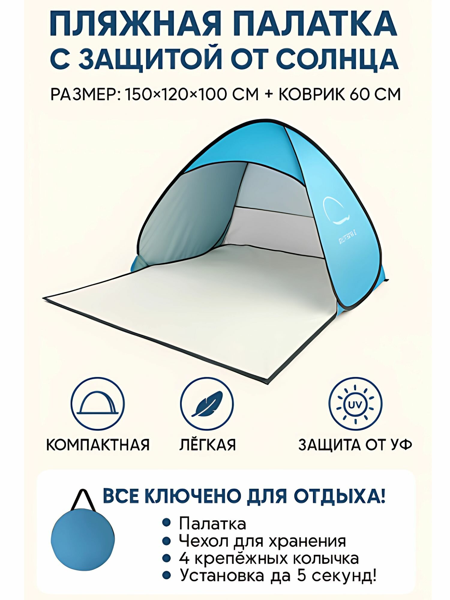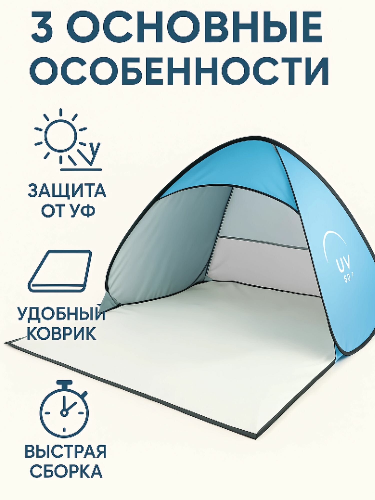 автоматическая установка, внутренняя палатка, возможность крепления фонарика, навес, окна, проклеенные швы, противомоскитная сетка, тамбур, тент