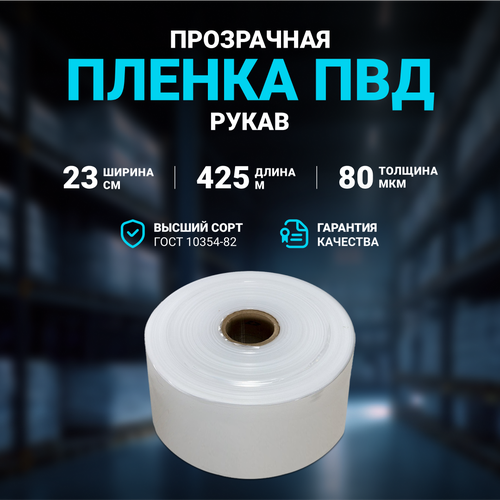 Плёнка упаковочная ПВД рукав прозрачный 23см, плотность 80 мкм, длина 425 м: сравнение цен, характеристики, фото, актуальное наличие и цены.