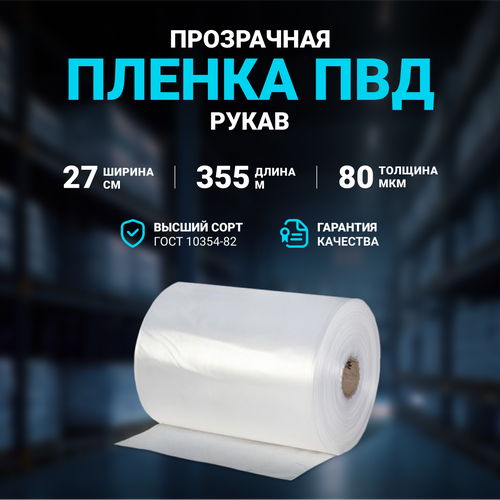 Плёнка упаковочная ПВД рукав прозрачный 27см, плотность 80 мкм, длина 355 м: сравнение цен, характеристики, фото, актуальное наличие и цены.