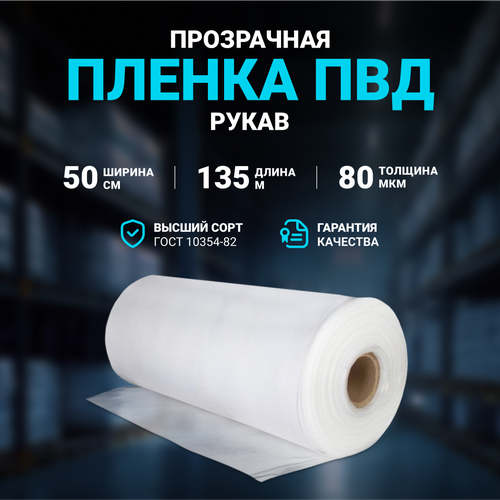 Плёнка упаковочная ПВД рукав прозрачный 50см, плотность 80 мкм, длина 135 м: сравнение цен, характеристики, фото, актуальное наличие и цены.