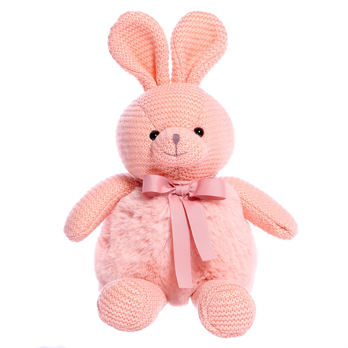 Купить Плюш Ленд Мягкая игрушка «Зайка вязаный», цвет розовый, 38 см с доставкой по всей России.