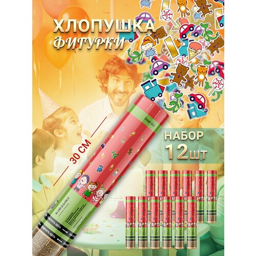 Пневматическая хлопушка на праздник Цветное конфетти и стикеры 30 см, в наборе 12 штук: сравнение цен, характеристики, фото, актуальное наличие и цены.