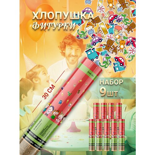 Пневматическая хлопушка на праздник Цветное конфетти и стикеры 30 см, в наборе 9 штук: сравнение цен, характеристики, фото, актуальное наличие и цены.