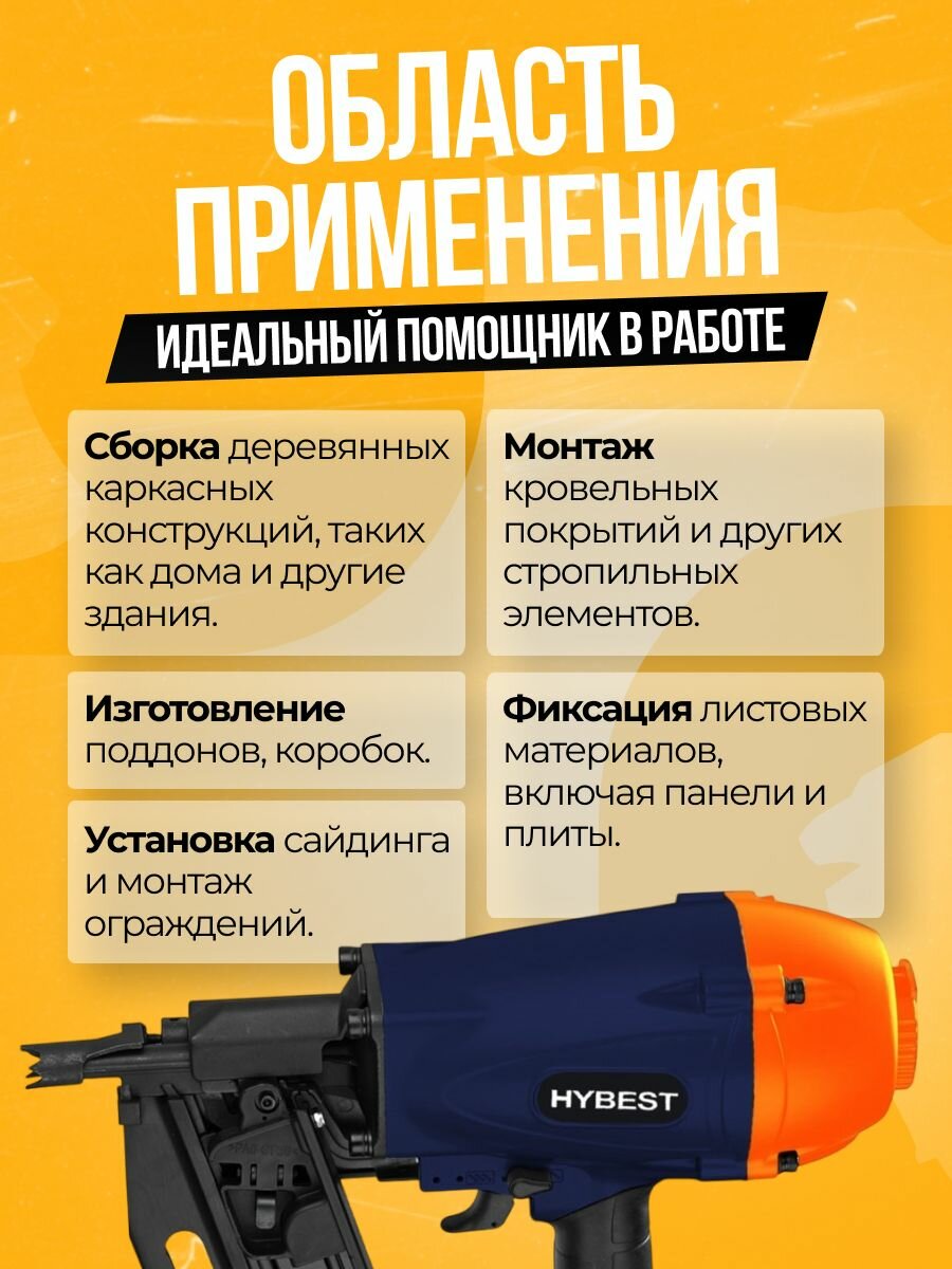 Пневматический монтажный пистолет Hybest FN2190 - надежный и эффективный инструмент для быстрого и точного монтажа. Вот некоторые из его характеристик: