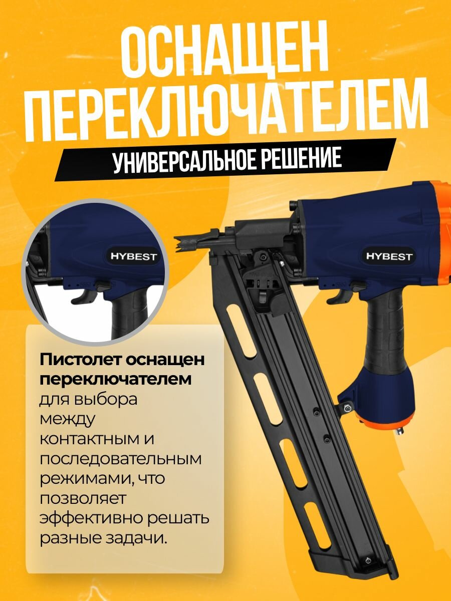Пневматический монтажный пистолет Hybest FN2190 - ваш надежный помощник в решении монтажных задач, сочетающий в себе удобство безопасность и высокую производительность.