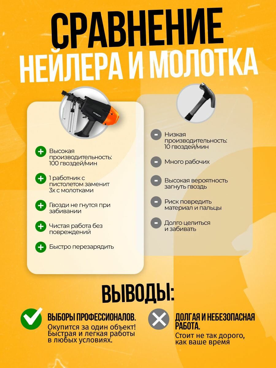 Пневматический гвоздезабивной пистолет по дереву Hybest FN90E 3 в 1 предназначен для работы с реечными гвоздями и идеален для монтажа деревянных конструкций. Мощный и высокоэффективный инструмент, который подходит как для сборки деревянных каркасов, так и для монтажа кровли и фиксации листовых материалов.