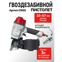 Пневматический пистолет Aprom CN55R применяется для забивания барабанных гвоздей длиной от 32 до 57мм