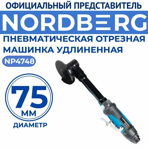 Пневмо отрезная машинка Ø 75мм NORDBERG NP4748 для резки и обработки металлических деталей в труднодоступных местах, оснащена предохранителем от случайного включения на курке.
