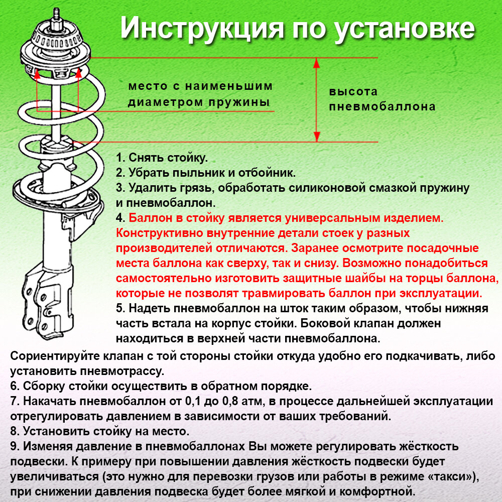 - Увеличение грузоподъемности автомобиля: благодаря пневмобаллонам, автомобиль может перевозить больше груза без ущерба для управляемости и комфорта.