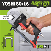 Пневматический пистолет скобозабивной (степплер) Yoshi 80/16. Рабочее давление, бар: 5-7; Расход воздуха (при 6 барах), Нл/выстрел: 0,3; Тип крепежа: скоба А; Длина крепежа, мм: 4-16 Предназначен для обивочных и декоративных работ. Поставляется в пластиковом кейсе, в комплекте со стартовым набором для начала работ: руководство пользователя, стальной шестигранный ключ, масленка из полиэтилена. Масса, кг: 0,95 Рабочее давление, бар: 5-7 Расход воздуха (при 6 барах), Нл/выстрел: 0,3 Тип крепежа: скоба А Длина крепежа, мм: 4-16
