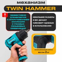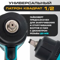 Широкий ассортимент насадок: тип патрона 1/2" квадратный позволяет использовать широкий ассортимент насадок, что делает этот гайковерт незаменимым инструментом на стройплощадках и в гаражах.
