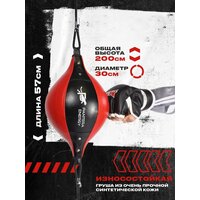 Пневмогруша выполнена в красно-черном цвете, что придает ей современный и стильный вид. Общая длина груши составляет 200 см, длина шара - 30 см, а диаметр шара - 30 см. Вес снаряда - 0,6 кг.
