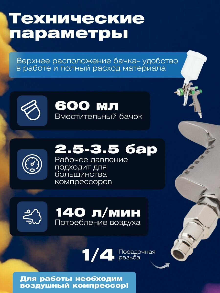 Краскораспылитель Stels AS 702 НP профессиональный всасывающего типа, сопло 1, 8 мм и 2, 0 мм 57364