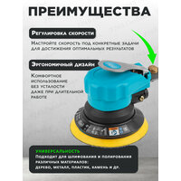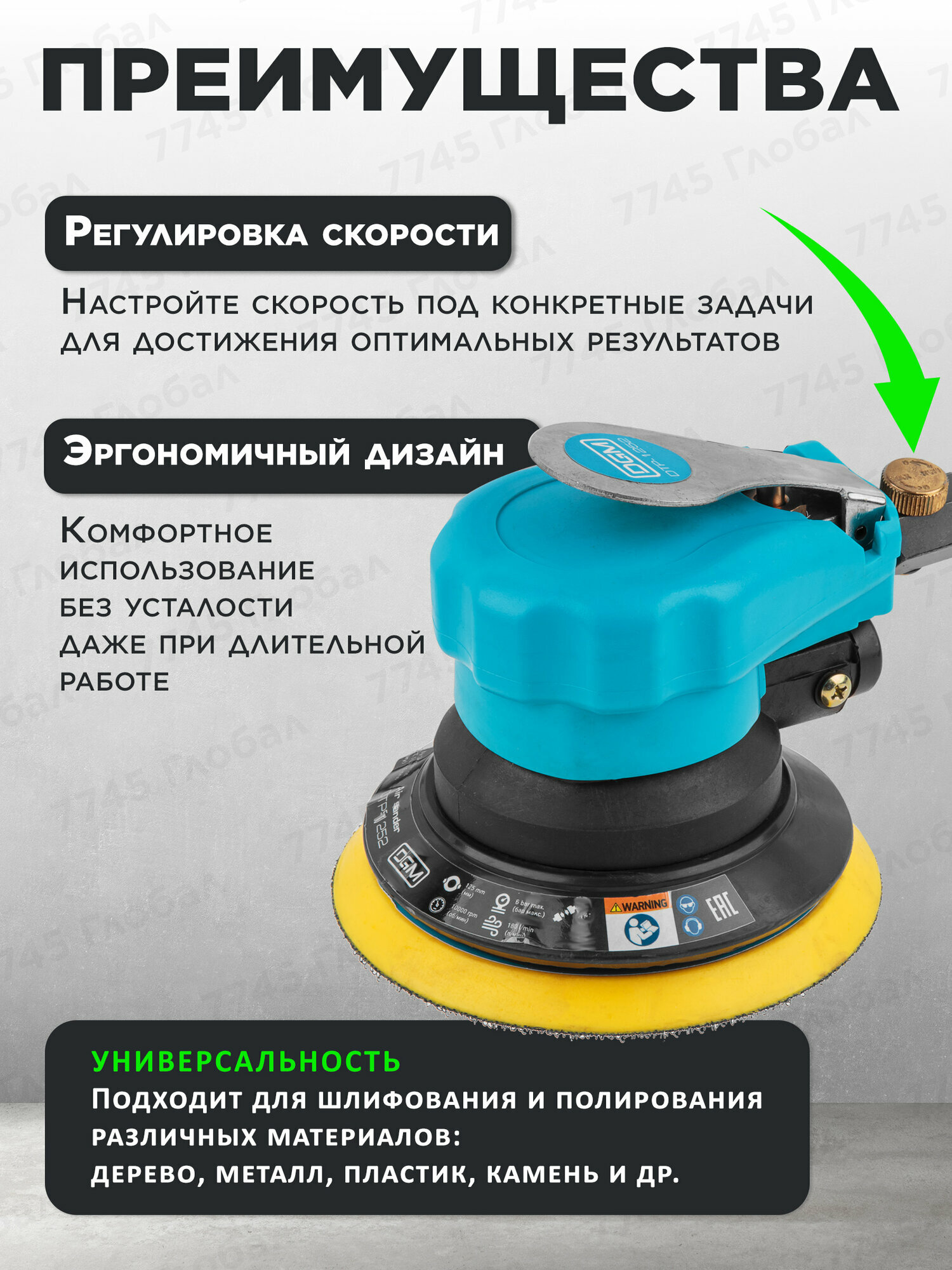 Пневмошлифмашина эксцентриковая DGM DTP - шлифовальная пневматическая машина, предназначенная для шлифования и полирования ровных и выпуклых поверхностей, для шлифовальных работ по дереву, пластмассе, металлу, камню, композитам, лакокрасочным покрытиям, шпаклевке и иным материалам с подобными свойствами, для шлифовки шпатлеванных или покрытых лаком поверхностей. Эксцентриковая шлифовальная машинка подходит для мокрого и сухого шлифования. Пневматическая шлифмашина имеет эргономичный дизайн. Пневмошлифмашинка имеет регулировку скорости. Рабочее давление пневматического инструмента 6,3 атм. Эксцентриситет шлифовальной машины: 5 мм. Расход воздуха 180 л/мин.