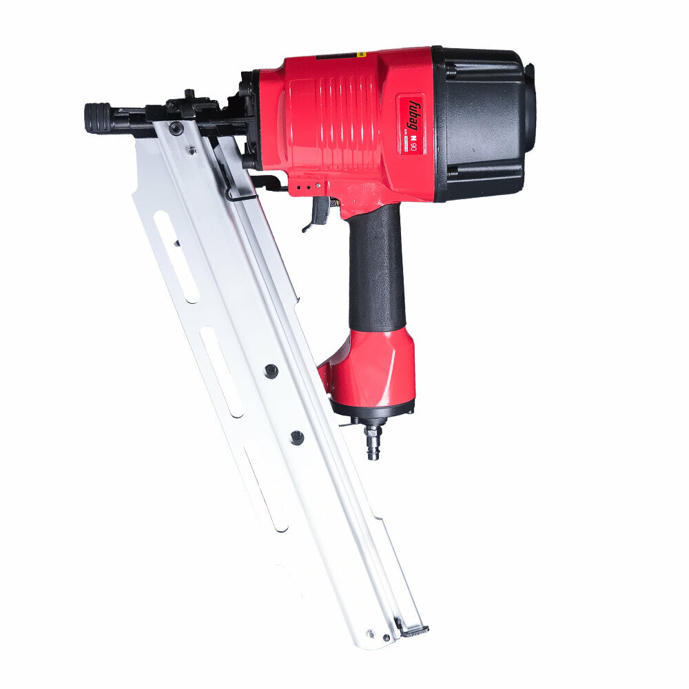 Гвоздезабивной пистолет Fubag N90 оснащён магазином, расположенным под углом к обрабатываемой поверхности. Незаменим для работ в местах, где крепёж вбивают под углом — стяжка поло.