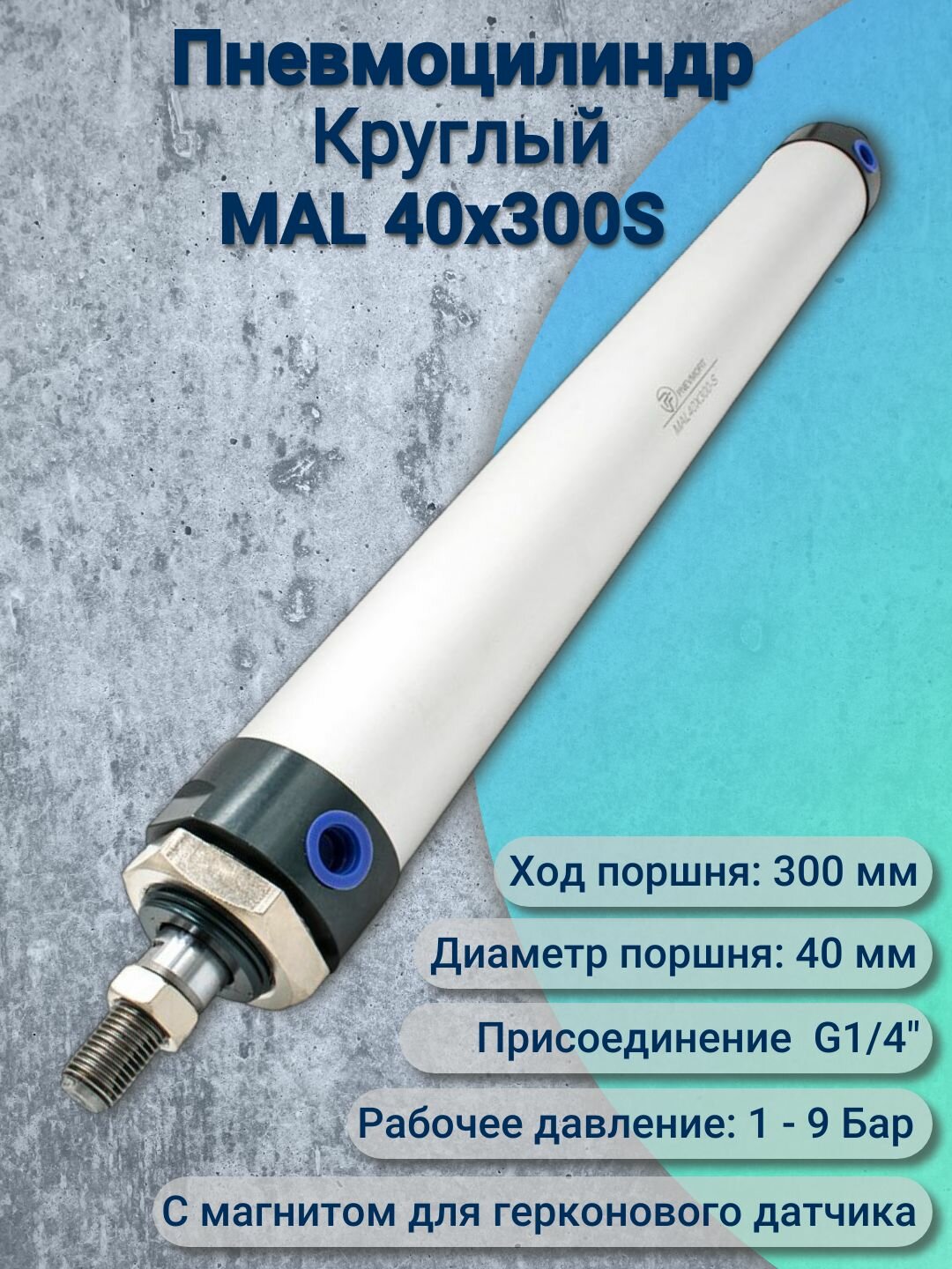 Пневмоцилиндр MAL 40×300-S: сравнение цен, характеристики, фото, актуальное наличие и цены.