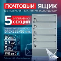 Почтовый ящик СПРУ-5 на 5 секции, размер 642x383x96 мм, светло-серый с задней стенкой, замки в комплекте: сравнение цен, характеристики, фото, актуальное наличие и цены.