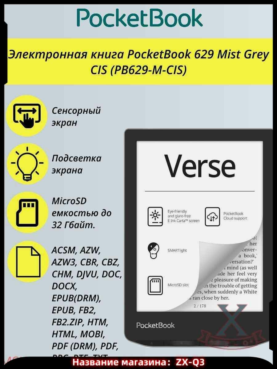 Pocketbook 6″ Электронная книга 629 Verse 758×1024, E-Ink Carta, сенсор, подсветка, Wi-Fi, 1500 мА*ч, черный: сравнение цен, характеристики, фото, актуальное наличие и цены.